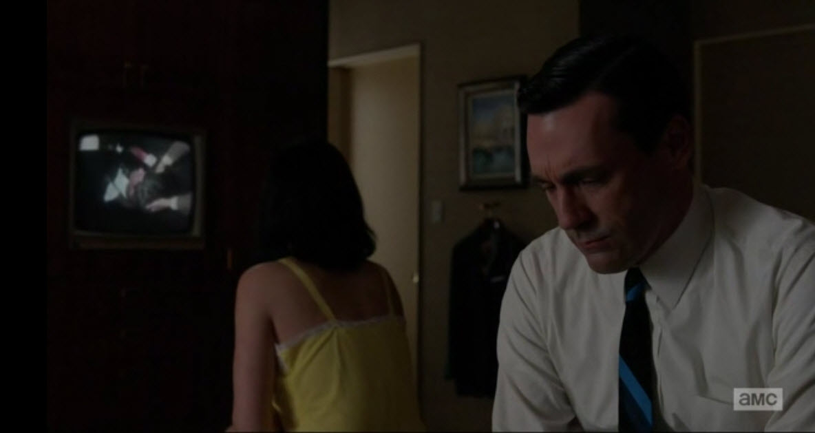 הרצח של בובי קנדי מוזכר כמעט כבדרך אגב. אם הרצח של קינג השתלט על הסדרה, הרצח הזה מצטמצם לאירוע שתפקידו כמעט אך ורק להקרין על הדמויות. הוא נועד להדגים את הטשטוש בין מציאות לדימיון, כשאמא של פיט מעירה אותו ואומרת "ירו בקנדי", ופיט בטוח שהיא חושבת על 1963. אבל עיקר תפקידו בסצינת הסיום. יתכן והטיפול ברצח לא עושה חסד עם האירוע ההיסטורי עצמו, אבל ההלם, תחושת חוסר האונים, הפחד, הם תפאורה מצמררת לנתק הבלתי נתפס בין דון למייגן. ובעצם, בין דון לכל אדם אחר בעולם. על רע הכתוביות אומר הקריין משפט על קנדי, שיכול להיאמר גם על דון: "בשלב זה היה ברור שהוא בהכרה, אבל לא ברור אם הוא אמר משהו בכלל".