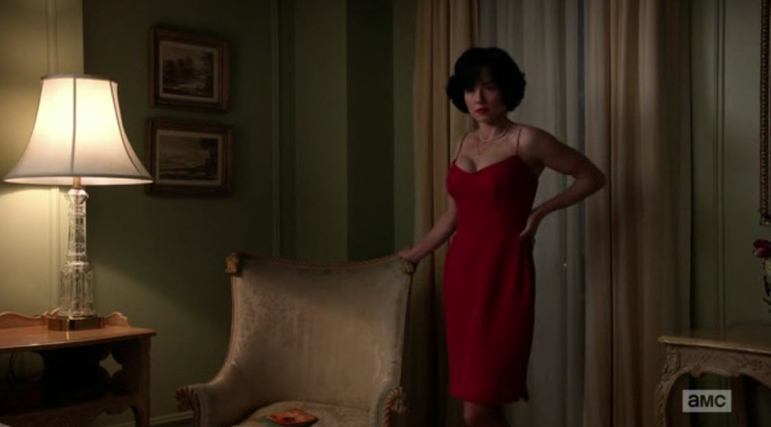 הפרק הזה לקח צעד קדימה את התחושה שדון משתמש בה בלבד. בסצינת הפתיחה דון שומע במעלית את סילביה וארני רבים, וזה כנראה הטריגר לפנטזיה הבדס"מית, שנעה בין הסרט "המזכירה" במקרה הטוב ל"50 גוונים של אפור" במקרה הפחות טוב. מטרתה, בכל אופן, אחת, כפי שדון מנסח זאת: להפוך את סילביה לכלי שמהותו לשרת את צרכיו של דון. בדס"מ זה סבבה, אבל מוטיב הזנות מופיע יותר מדי פעמים – בפקודות שהוא נותן לה, בשמלה האדומה שהוא קונה לה, בטלפון שגורם לה לאונן (או מה שאנסטסיה סטיל היתה מכנה בתרגום מופרך לעברית "להתענן").