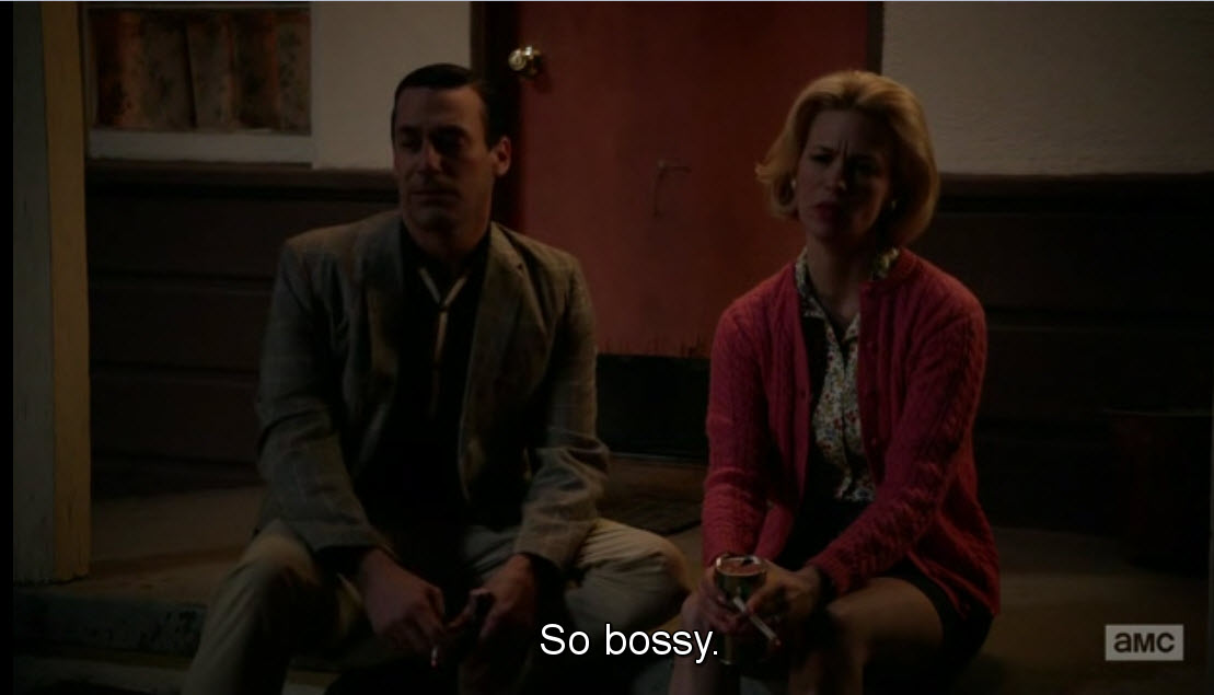 – הסצינה בין בטי לדון אחרי הסקס היא אחת היפות שאני זוכרת בסדרה מזה זמן רב. שווה להתעכב על מה שבטי אומרת לדון: “I love the way that you look at me when you’re like this. But then I watch it decay. I can only hold your attention for so long.” — דון כבר שמע משהו דומה מפיי בעונה 4: אתה אוהב רק את ההתחלות.