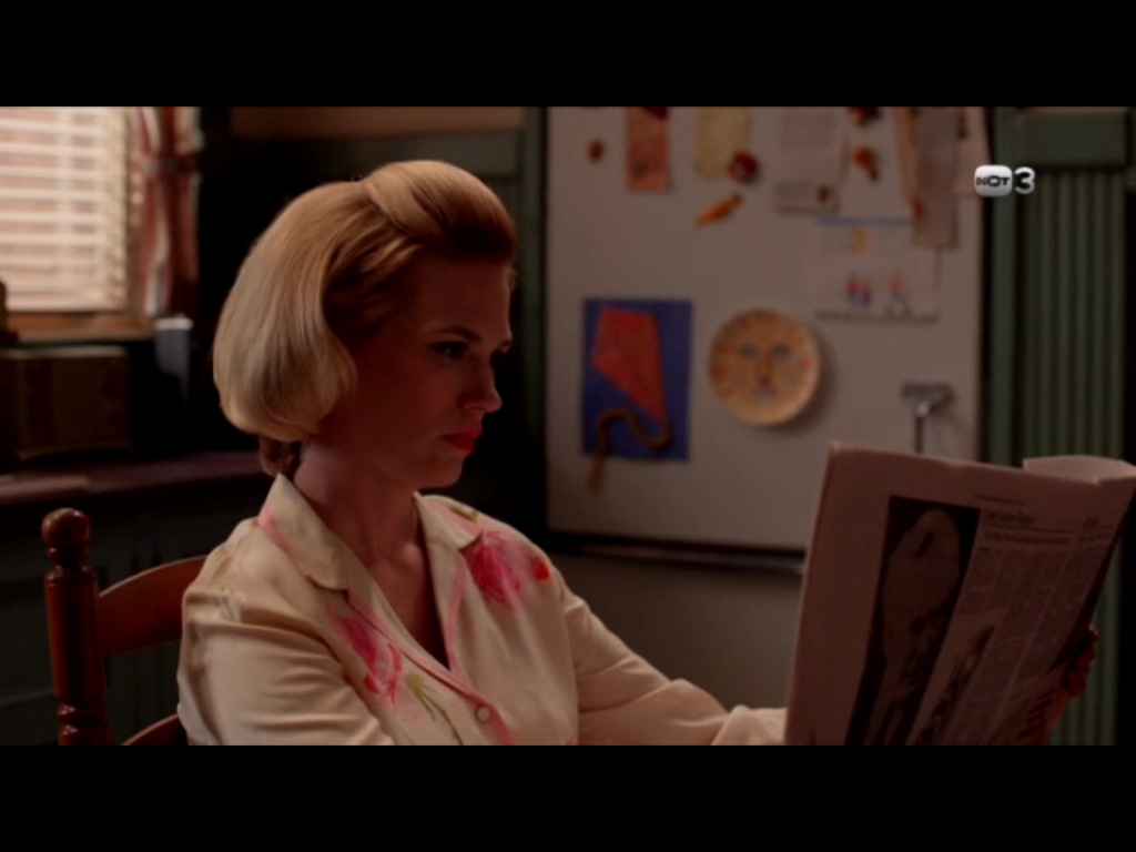 ההקשרים בפרק לא מושלמים, אבל זה לא אומר שהם לא קיימים בכלל. מבטי אנחנו למדים על דון. כי בטי תקועה בסיטואציה הזו, אבל לא תעשה דבר כדי לשנותה, חוץ מלשבת במטבח. הפסיביות שלה, חוסר ההשתנות שלה, עומדים בניגוד ליכולת של דון להשתנות ולהמציא את עצמו מחדש.